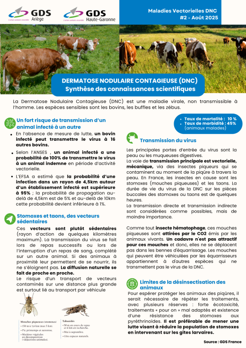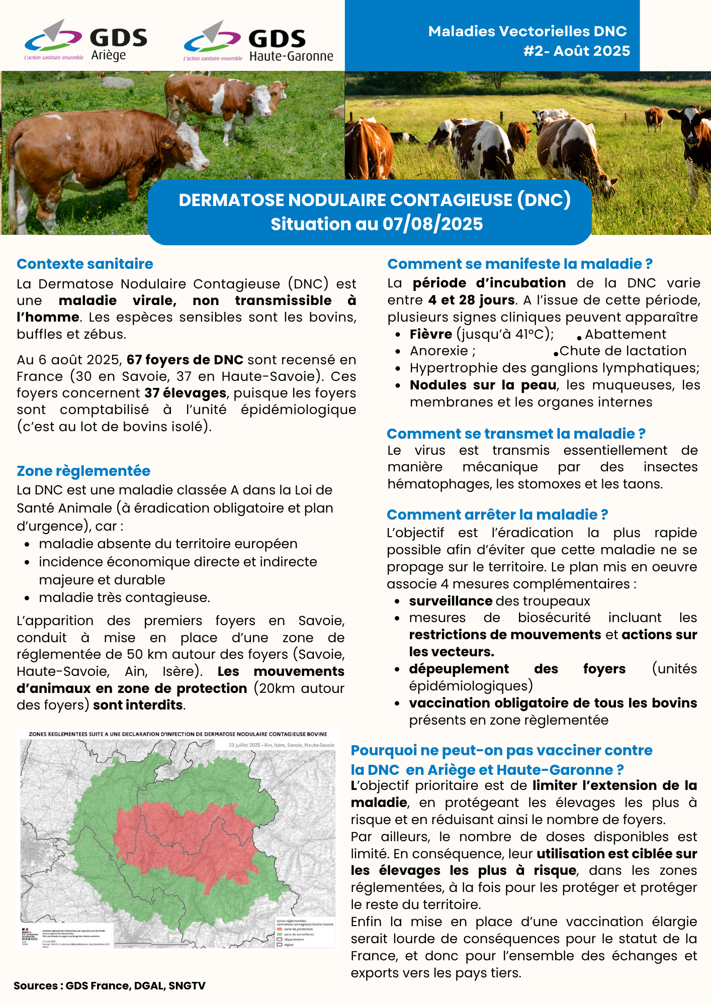 Dermatose Nodulaire Contagieuse, point au 7 août 2025