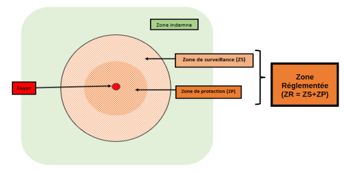Par conséquent aucun mouvement pour l’élevage partant de la zone réglementée vers la zone indemne ne pourra être effectué